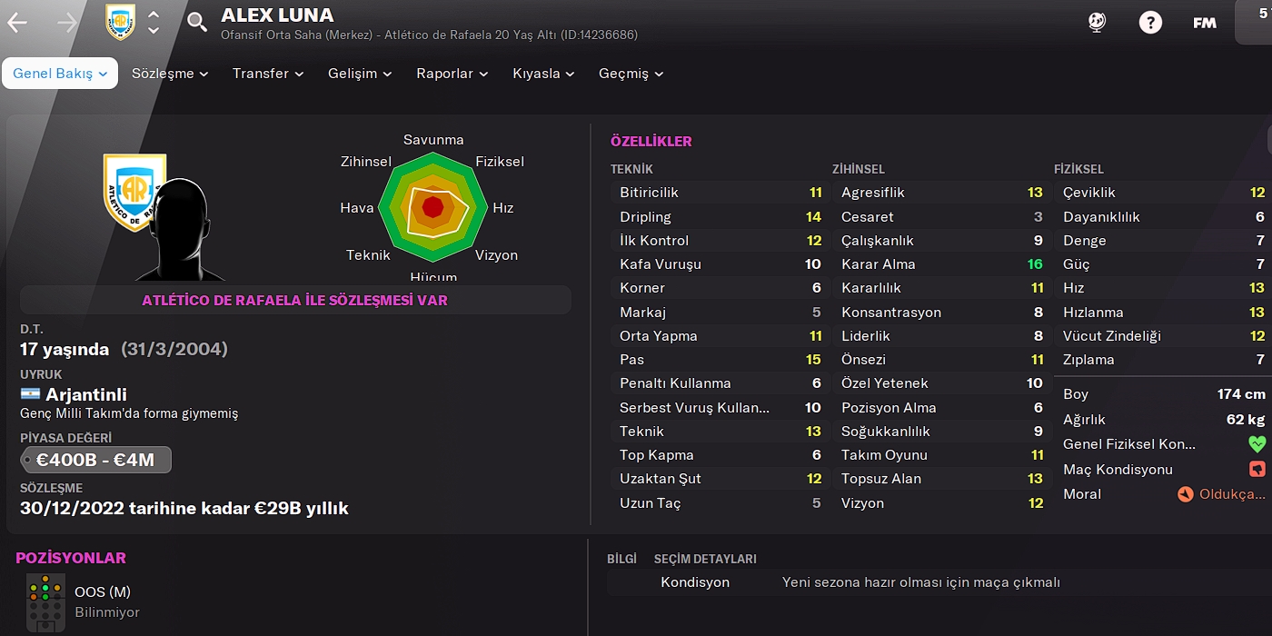 Alex Luna geleneksel bir orkestra şefi olmanın yanında skor üretme yeteneği ile de öne çıkan bir on numara, oyuncunun en bariz dezavantajları dayanıklılık, denge, güç ve cesaret olarak göze çarpıyor.