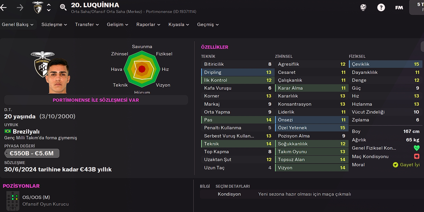 Luquinha genç yaşına rağmen her açıdan ilk 11 oynamaya hazır bir orkestra şefi olarak ön plana çıkıyor, oyuncunun en bariz dezavantajları bitiricilik ve güç olarak göze çarpıyor.