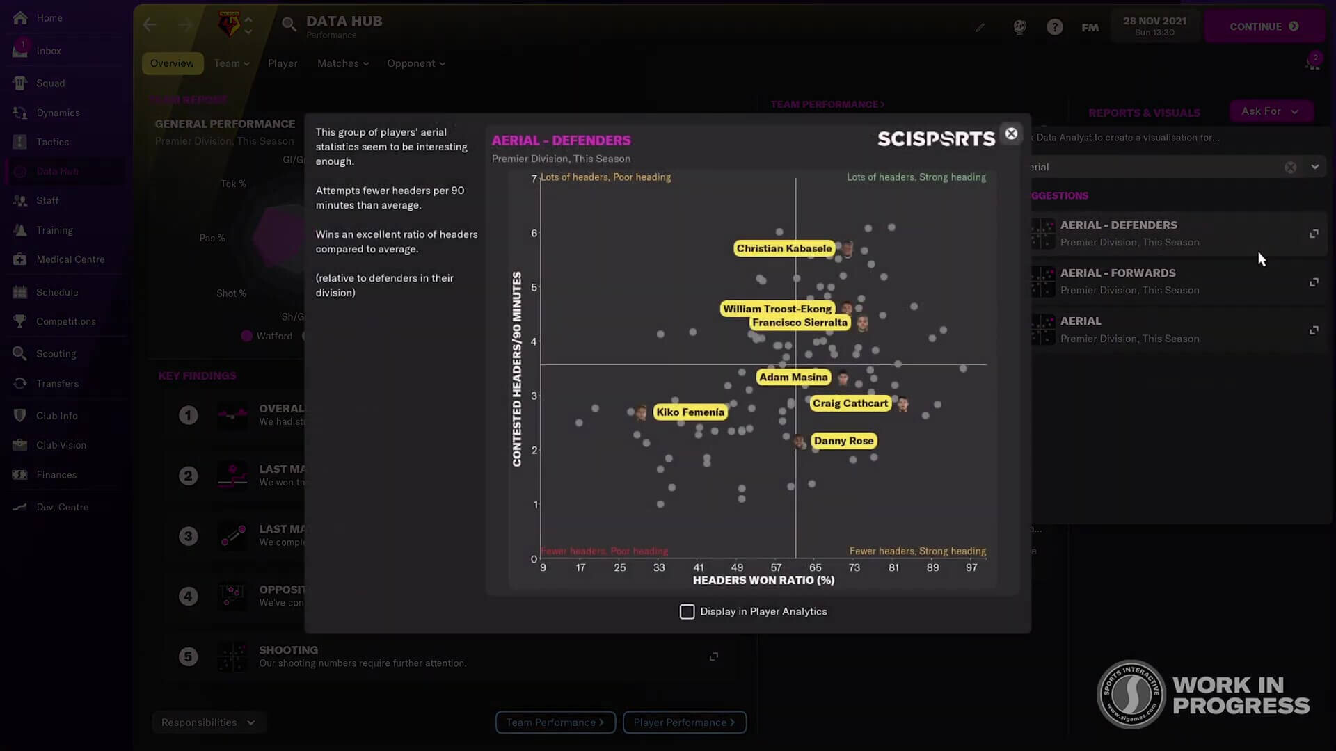 Veri Merkezi ekranından yapılan güncellemelerle verilerin önemi FM 2022’de iyice artacak. Veri merkezi ekranında ilk gözümüze çarpan yenilik; Scisports işbirliği ile veri merkezinin grafiklerinin daha anlaşılır olduğu.