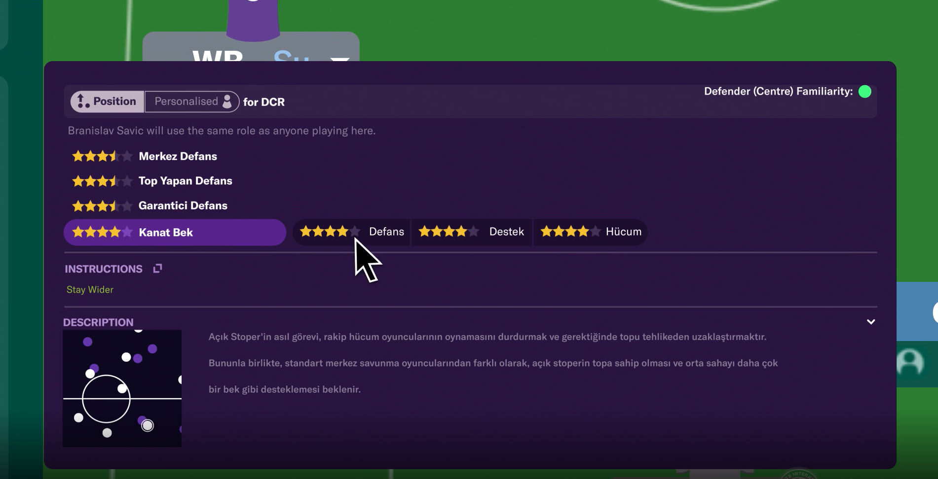Oyun çıktığında bu rol üzerine daha detaylı bir yazı yazmayı planlıyorum. Ancak ana hatlarıyla bu rolün görevi rakip hücum oyuncularını durdurmak, gerektiğinde topu tehlikeden uzaklaştırmak olmakla birlikte, standart merkez defans oyuncularından farklı olarak, topa sahip olarak orta sahayı daha çok bir bek gibi desteklemek olacaktır.