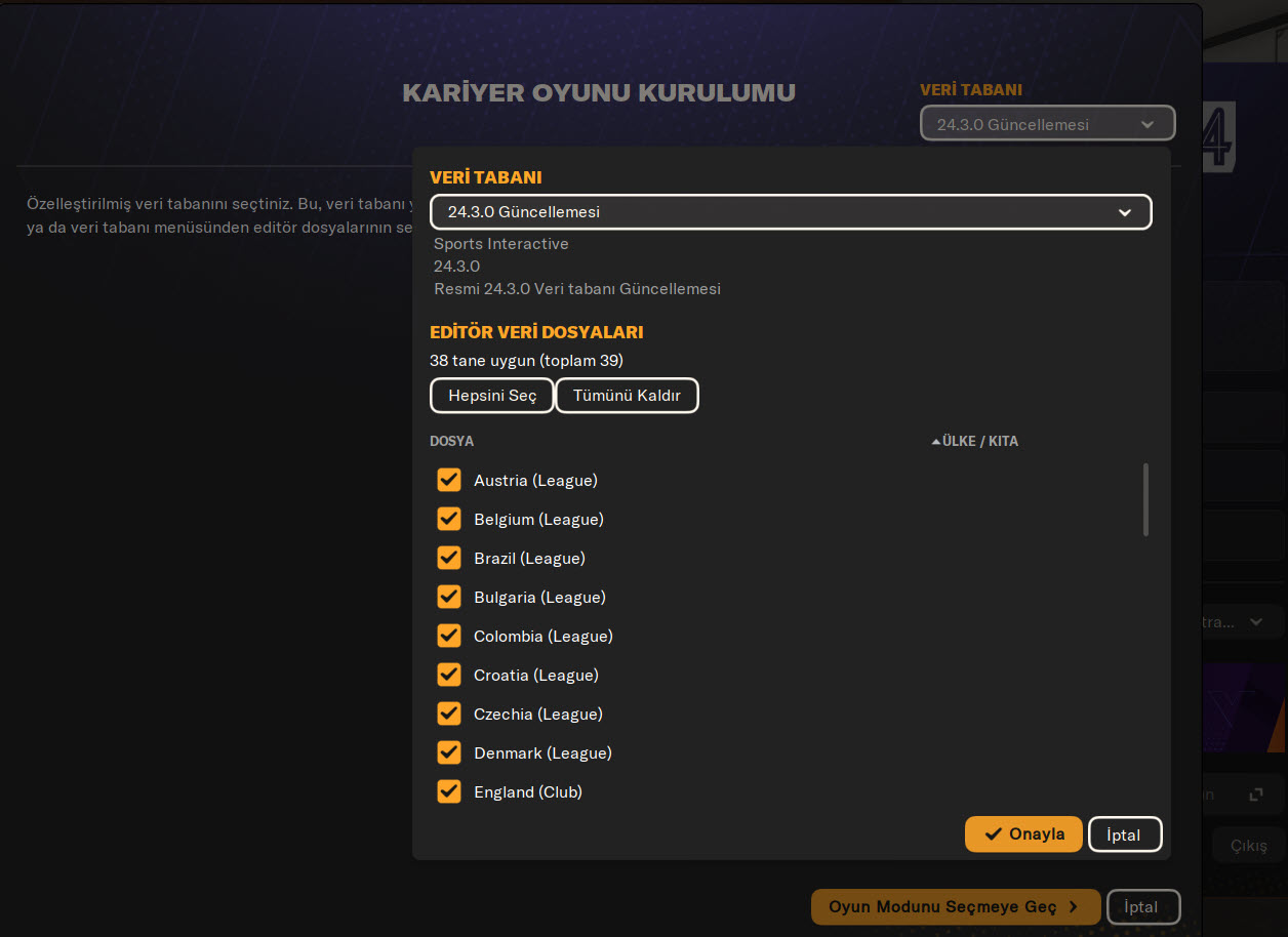 Football Manager 2024 klasörü içerisinde editör data dosyası yoksa kendiniz oluşturmalısınız. Şimdi YENİ KARİYER açtığınızda bu yamanın aktif olması için oyundaki ayaları yapma zamanı.