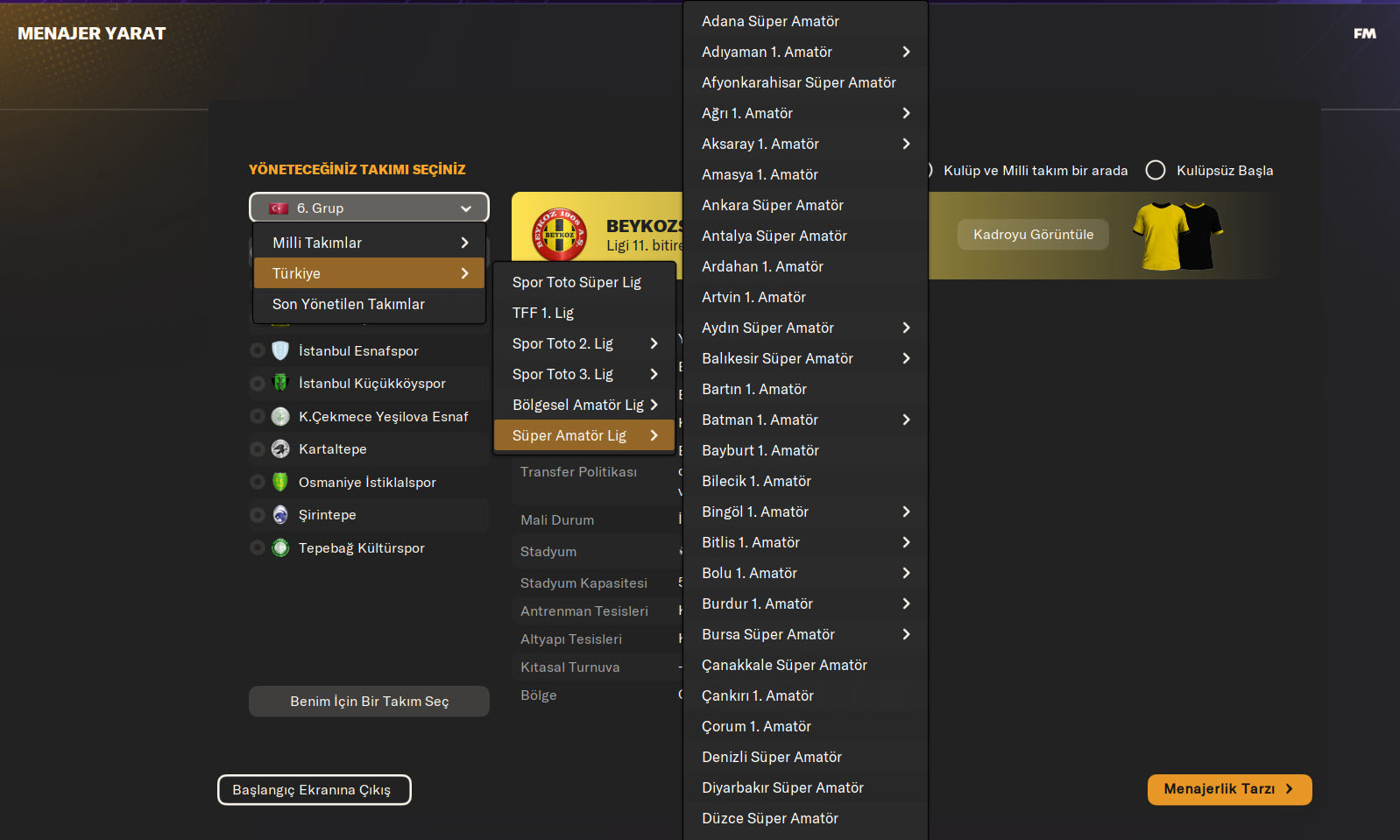 Süper Lig, 1. Lig ve 2.Lig’de yer alamayan takımlarla kariyer yapıp başarılı olmak bir anlamda “Dünyaya meydan okumak” için Sports Interactive resmi yollardan önümüzü kesmiş olsa da sunulan yamalar bu heyecanımızı tekrar canlandırdı. Turksportal.net ailesinden Affluence tarafından geliştirilen yama ile artık Süper Amatör Liglerden takım alarak Şampiyonlar Ligi şampiyon yapmanın tam zamanı.