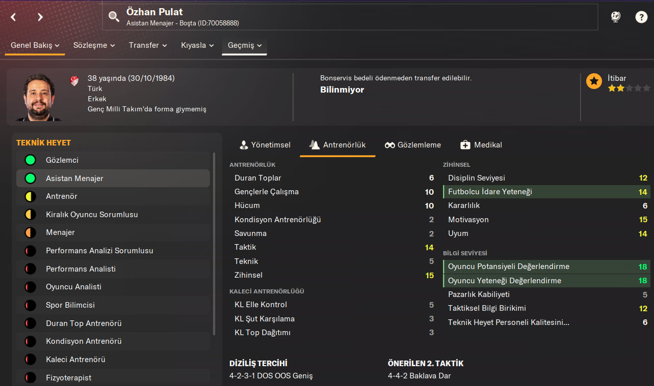 FM 24’te başarılı olabilmek için yapmış olduğunuz transferler, kurguladığınız taktikler kadar takımınızla 7/24 zaman geçirecek teknik heyetinize de özen göstermelisiniz. FM 24’te güncel transfer yamasıyla oynadığınızda kadronuza katabileceğiniz asistan menajerleri sizlerle paylaşıyoruz. İşte FM24 güncel kadro yamasındaki boştaki en iyi asistan menajerler.