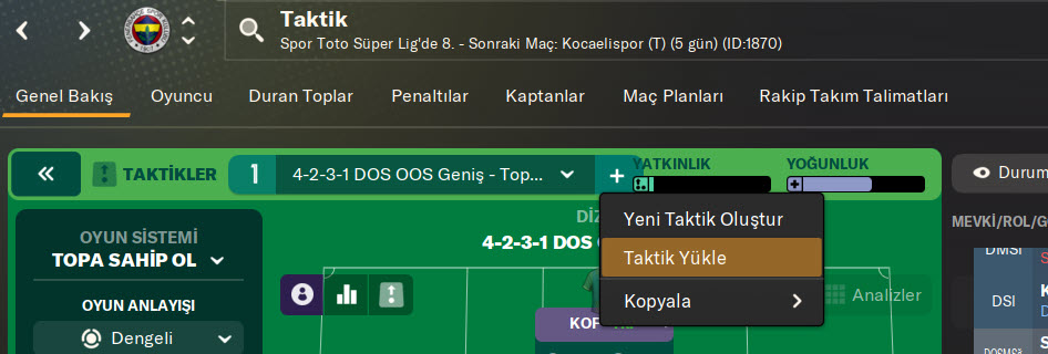 4- Tactics klasörü içerisine atmış olduğunuz dosyalar şimdi karşınıza geldi. Kullanmak istediğiniz taktiği seçin ve oyunuza dahil edin.