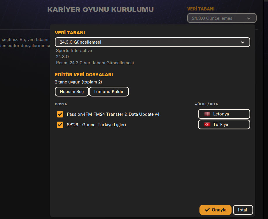 Football Manager 2024 klasörü içerisinde editör data dosyası yoksa kendiniz oluşturmalısınız. Şimdi YENİ KARİYER açtığınızda bu yamanın aktif olması için oyundaki ayaları yapma zamanı.