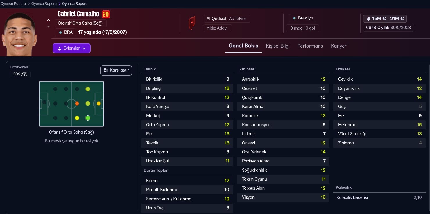 Gabriel Carvalho | FM26 | 17 Yaş| Al-Qadsiah