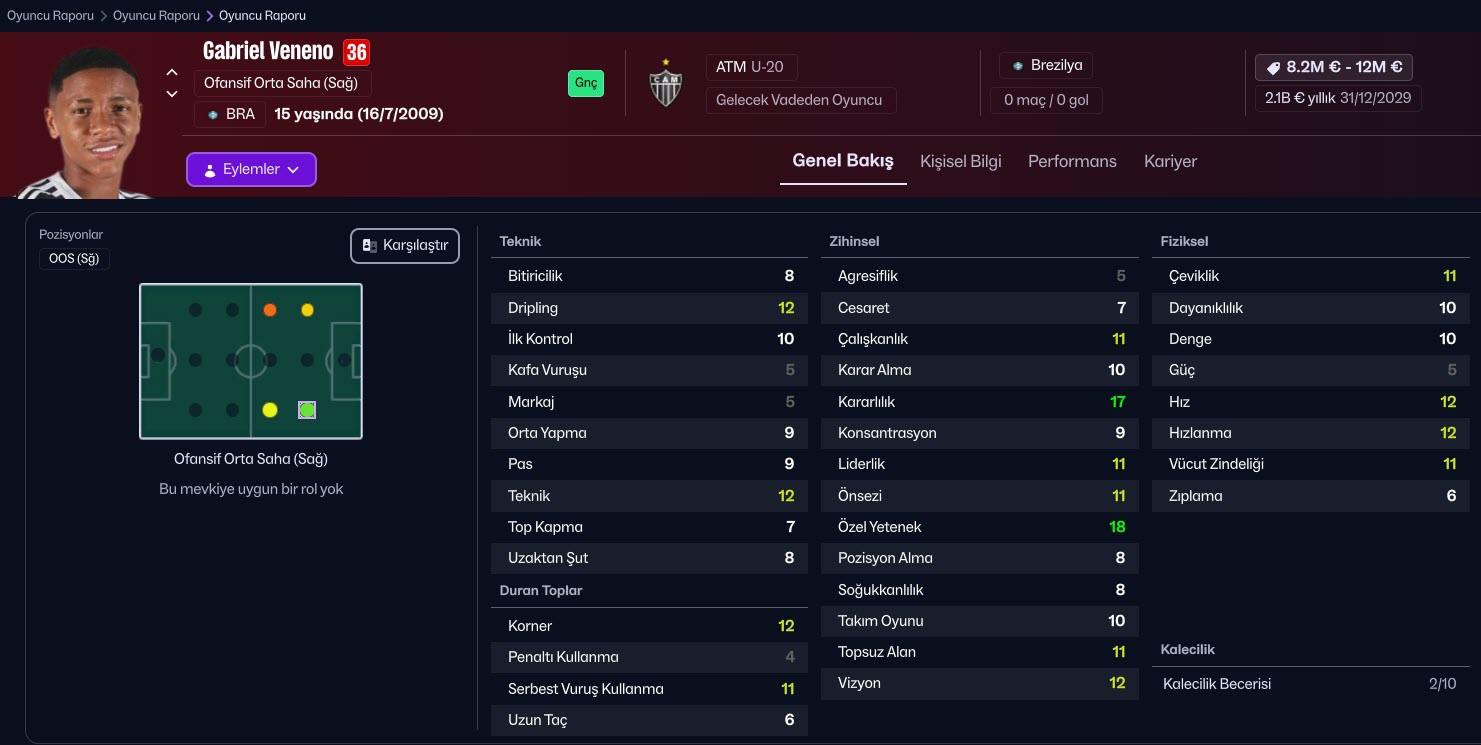 Gabriel Veneno | FM26 | 15 Yaş| Atlético Mineiro