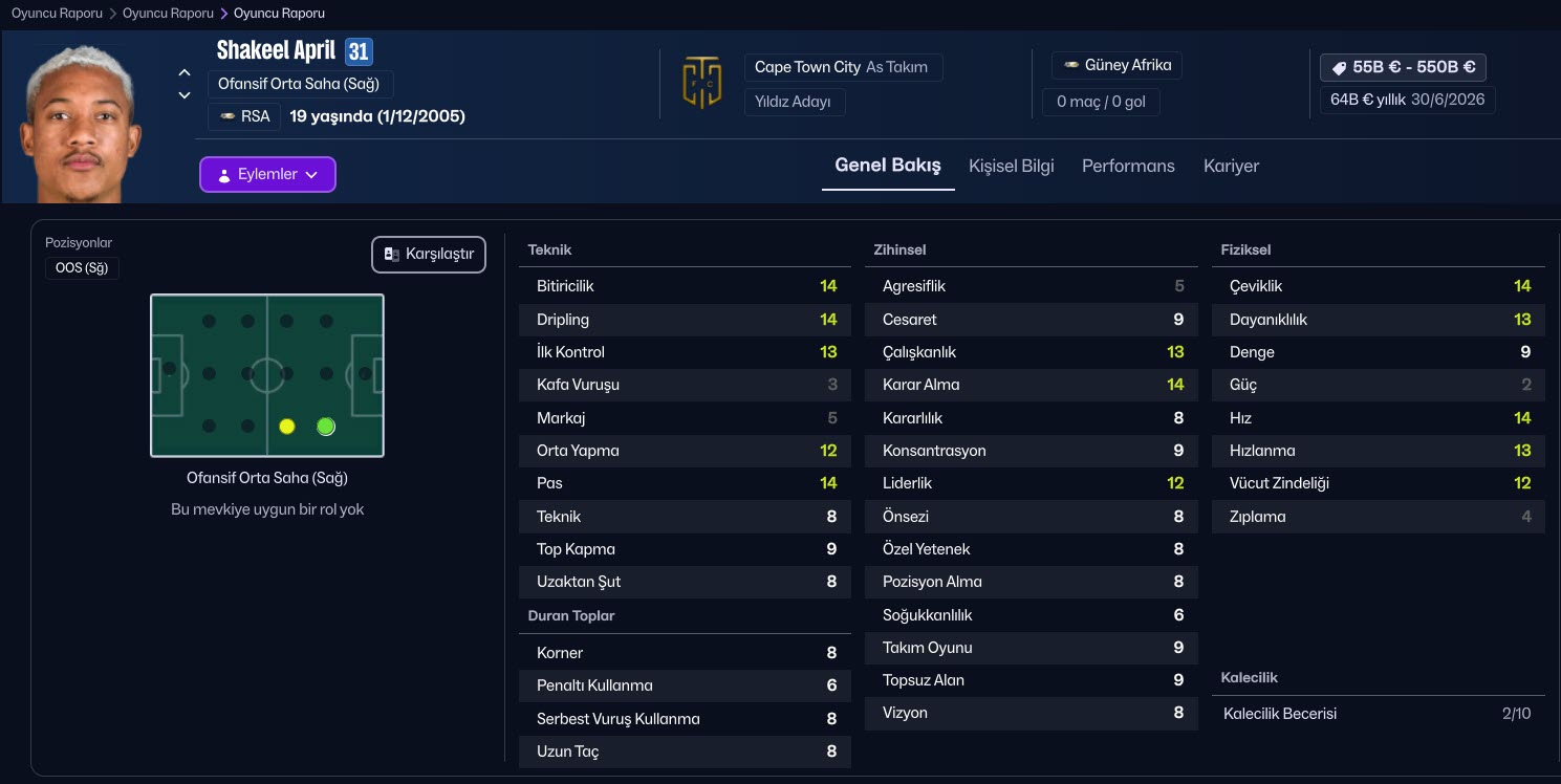 Shakeel April | FM26 | 19 Yaş| Cape Town City