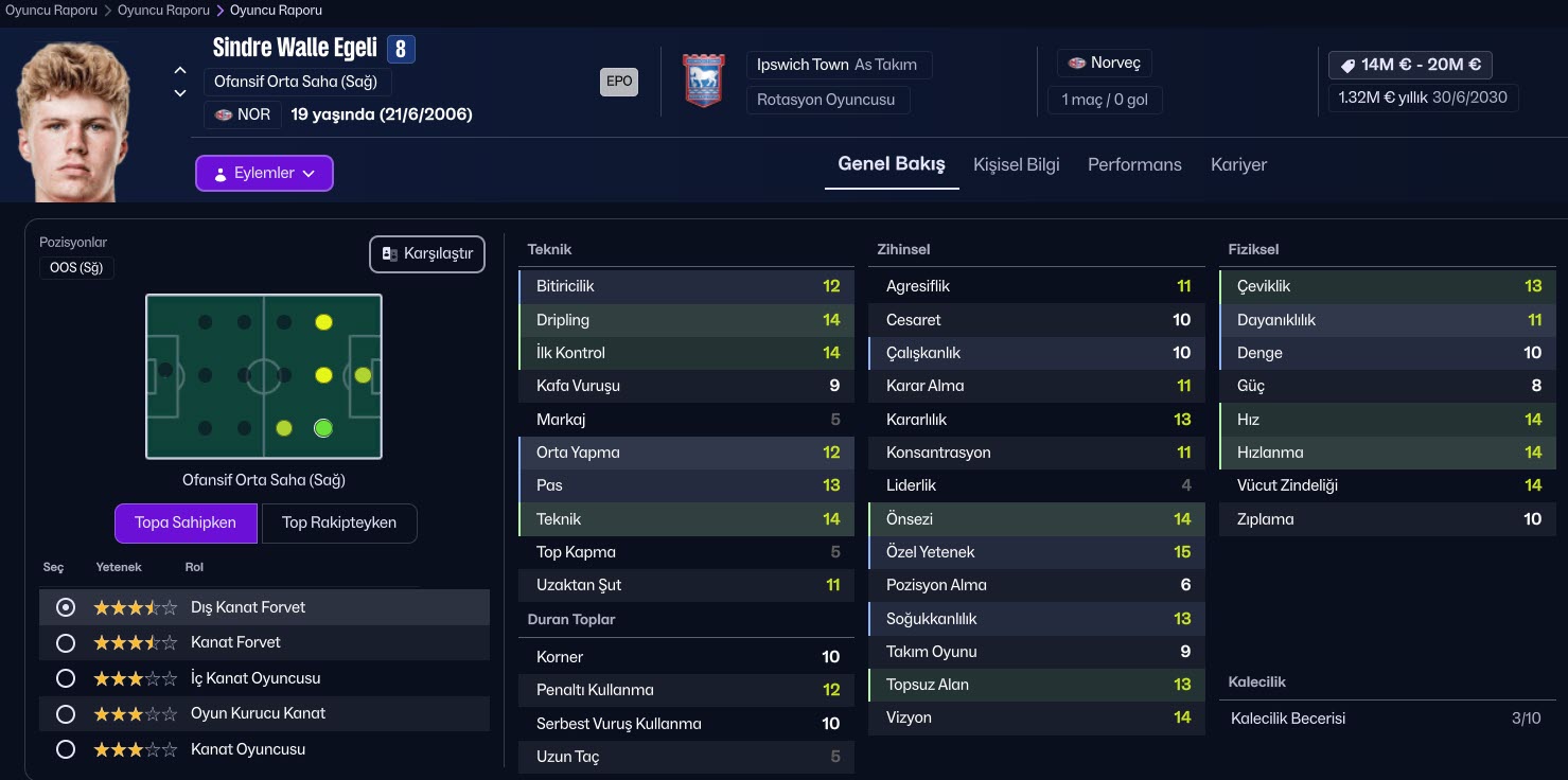 SindreWalle Egeli | FM26 | 19 Yaş | Ipswich Town