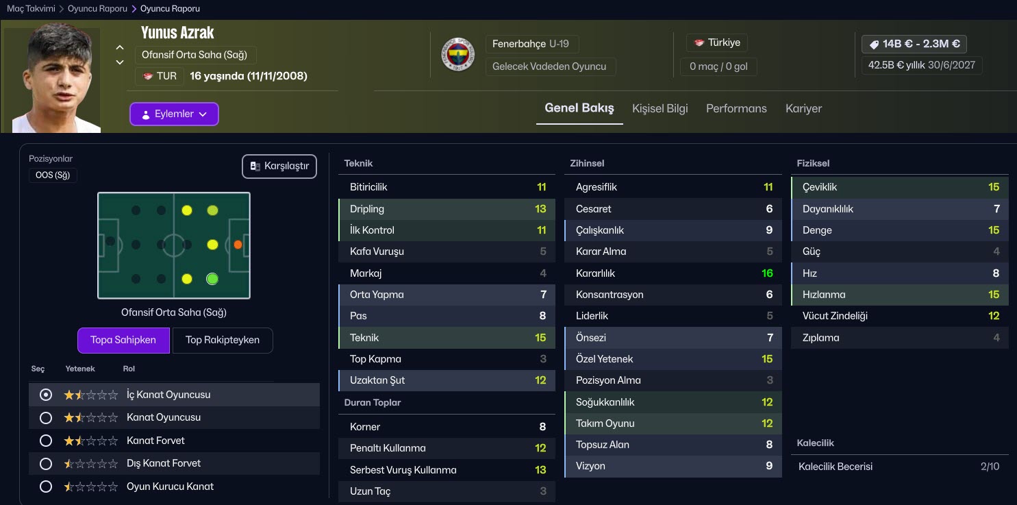 Yunus Azrak | FM26 | 16 Yaş| Fenerbahçe