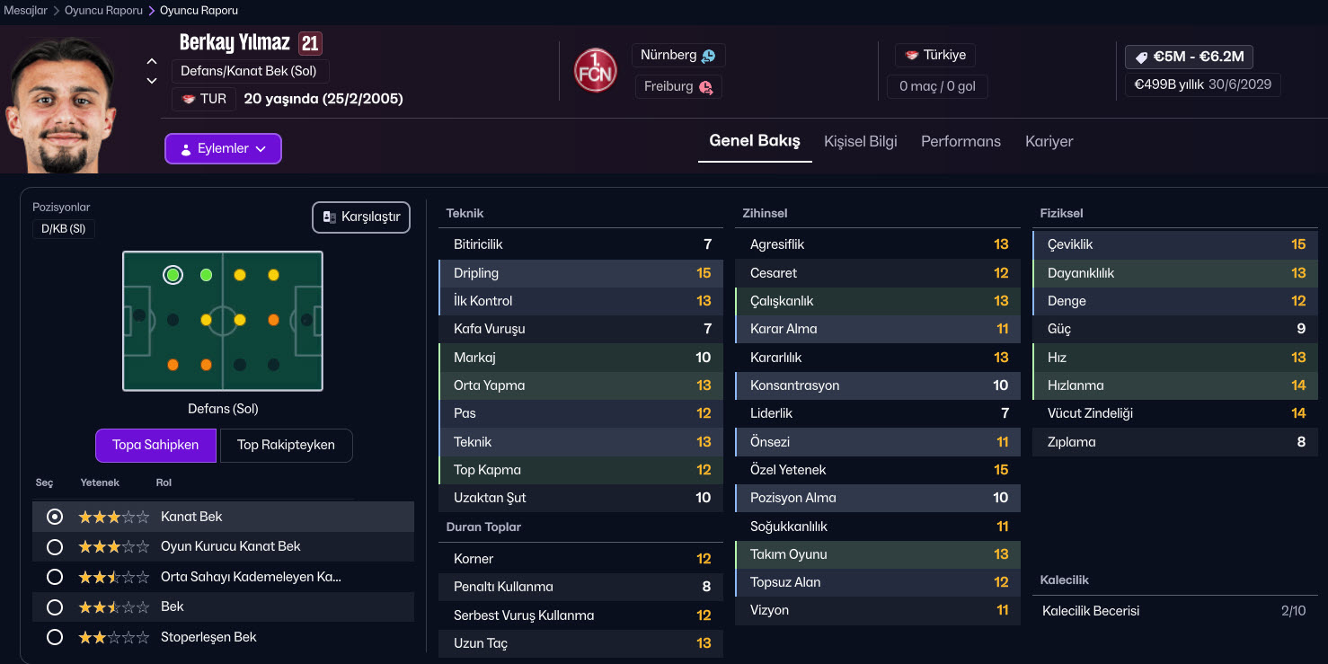 Berkay Yılmaz | FM26 | 20 Yaş | SC Freiburg