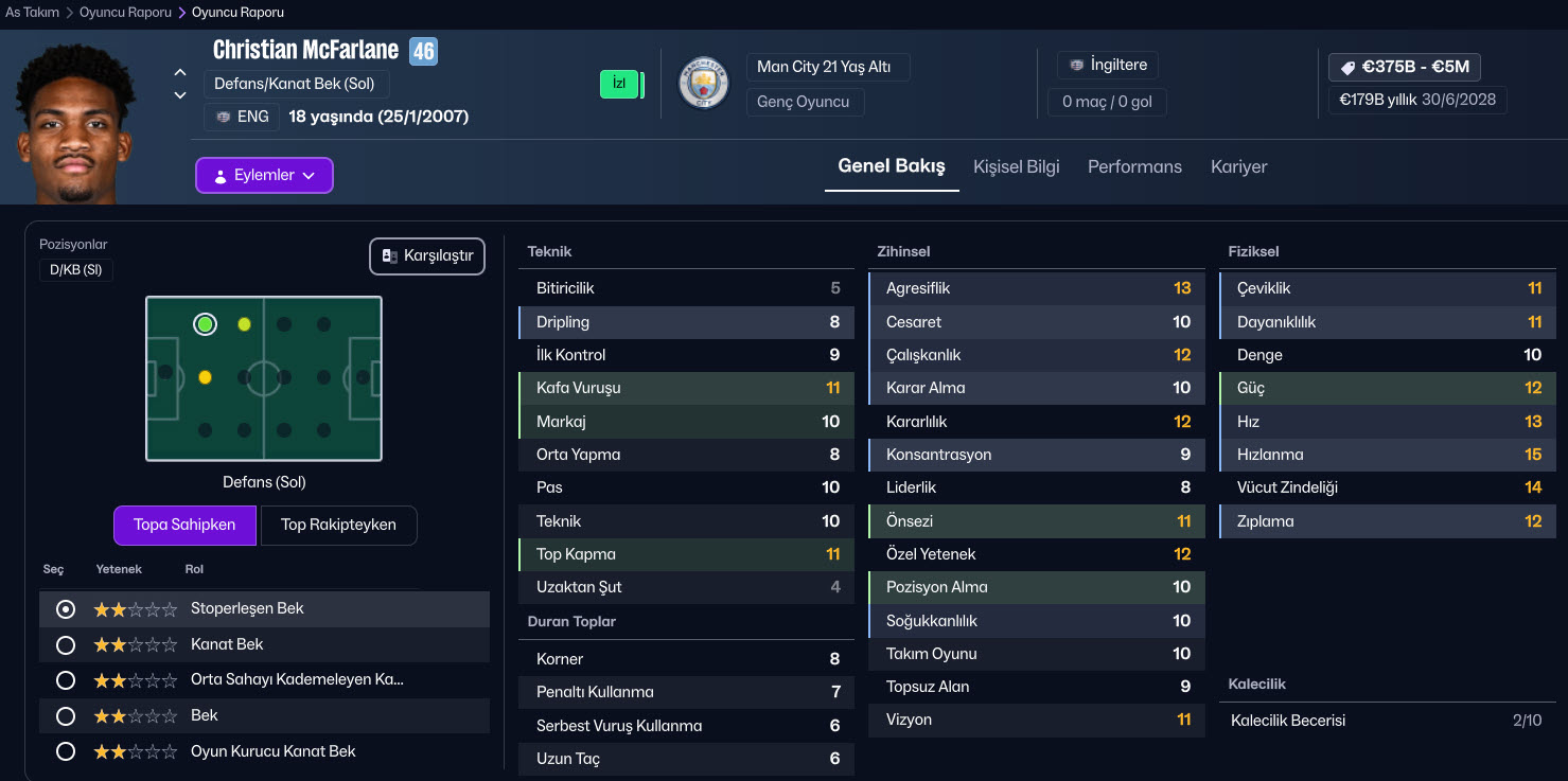 Christian McFarlane | FM26 | 18 Yaş | Man City