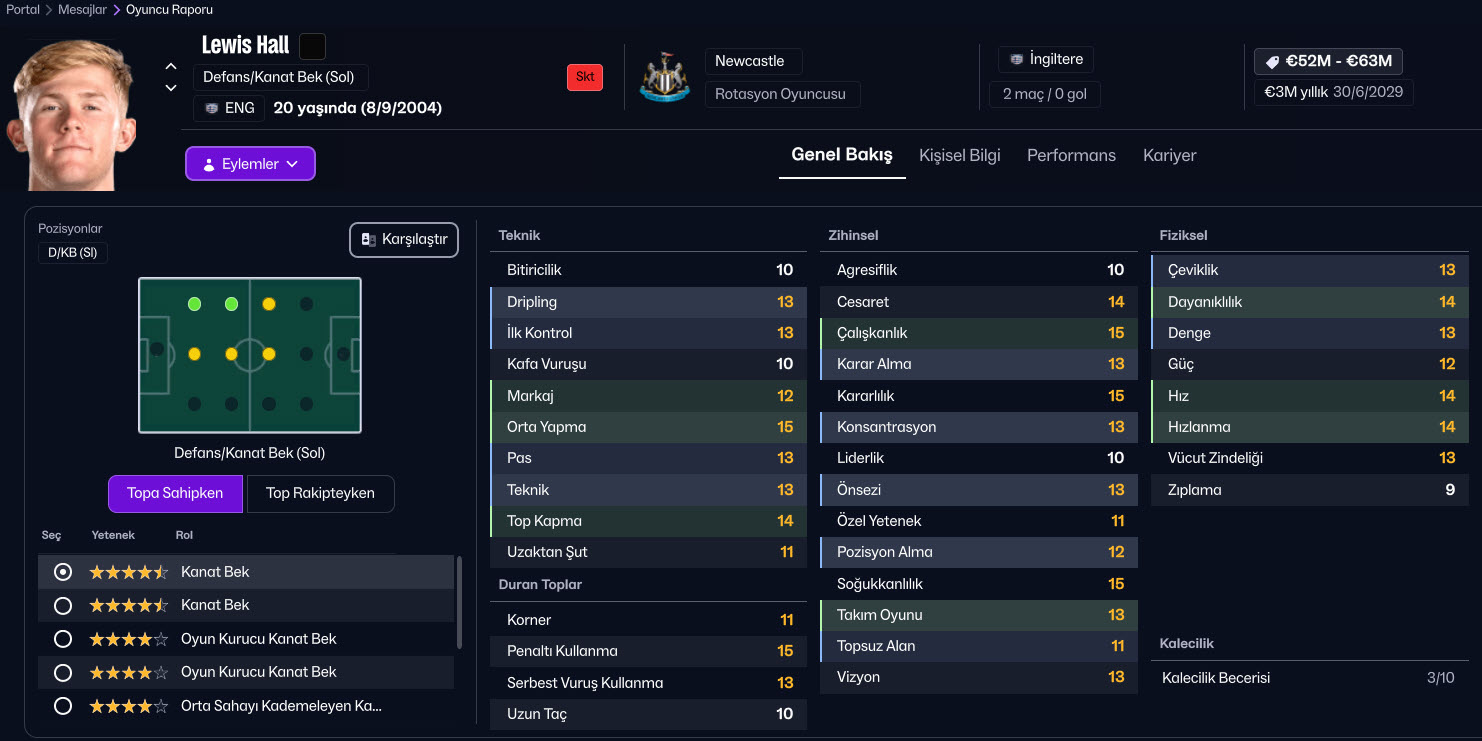 Lewis Hall | FM26 | 20 Yaş | Newcastle