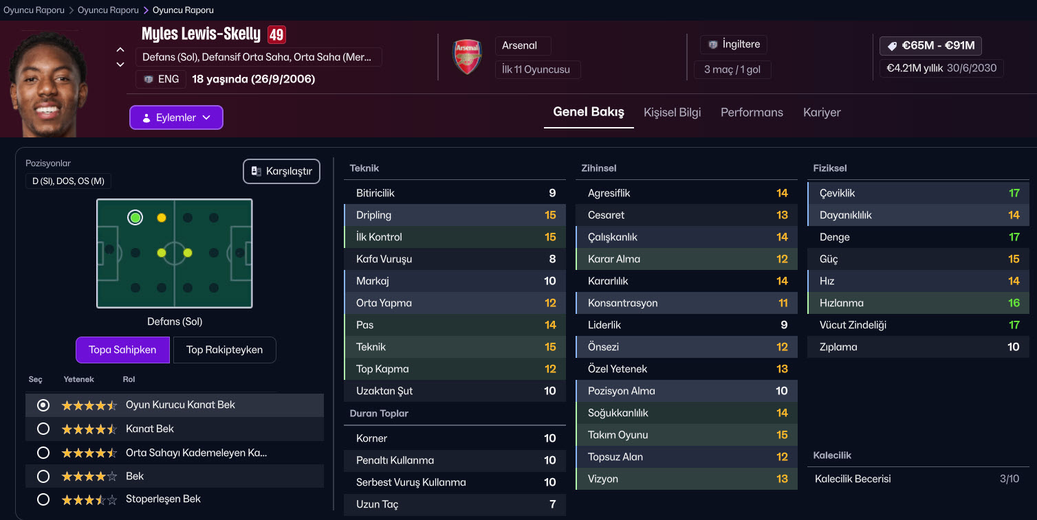 Myles Lewis-Skelly | FM26 | 18 Yaş | Arsenal