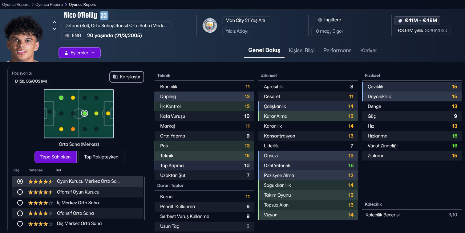 Nico O’Reilly | FM26 | 20 Yaş | Man City