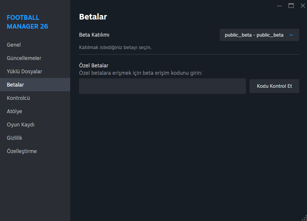 FM26’ya gelecek olan yenilikleri ve hata çözümlerine daha erken erişmek isteyenler için public betaya katılmak gerekiyor. FM26 public betaya steam üzerinden katılmak için