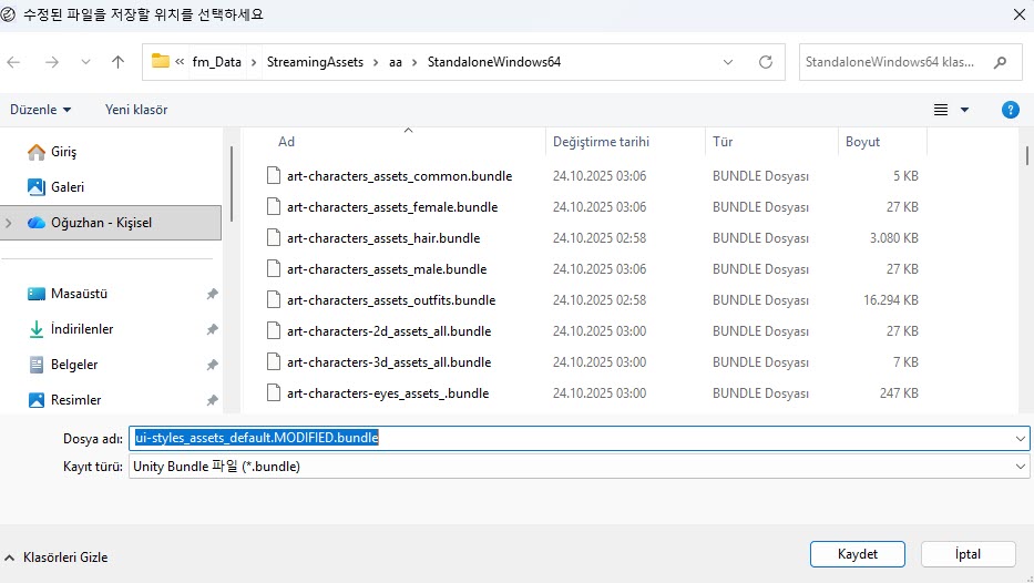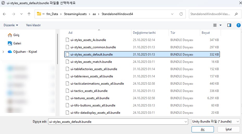 9) Programla işimiz bitti şimdi tekrar E:\Steam\steamapps\common\Football Manager 26\fm_Data\StreamingAssets\aa\StandaloneWindows64 yani tema dosyasının olduğu yere gidiyoruz.