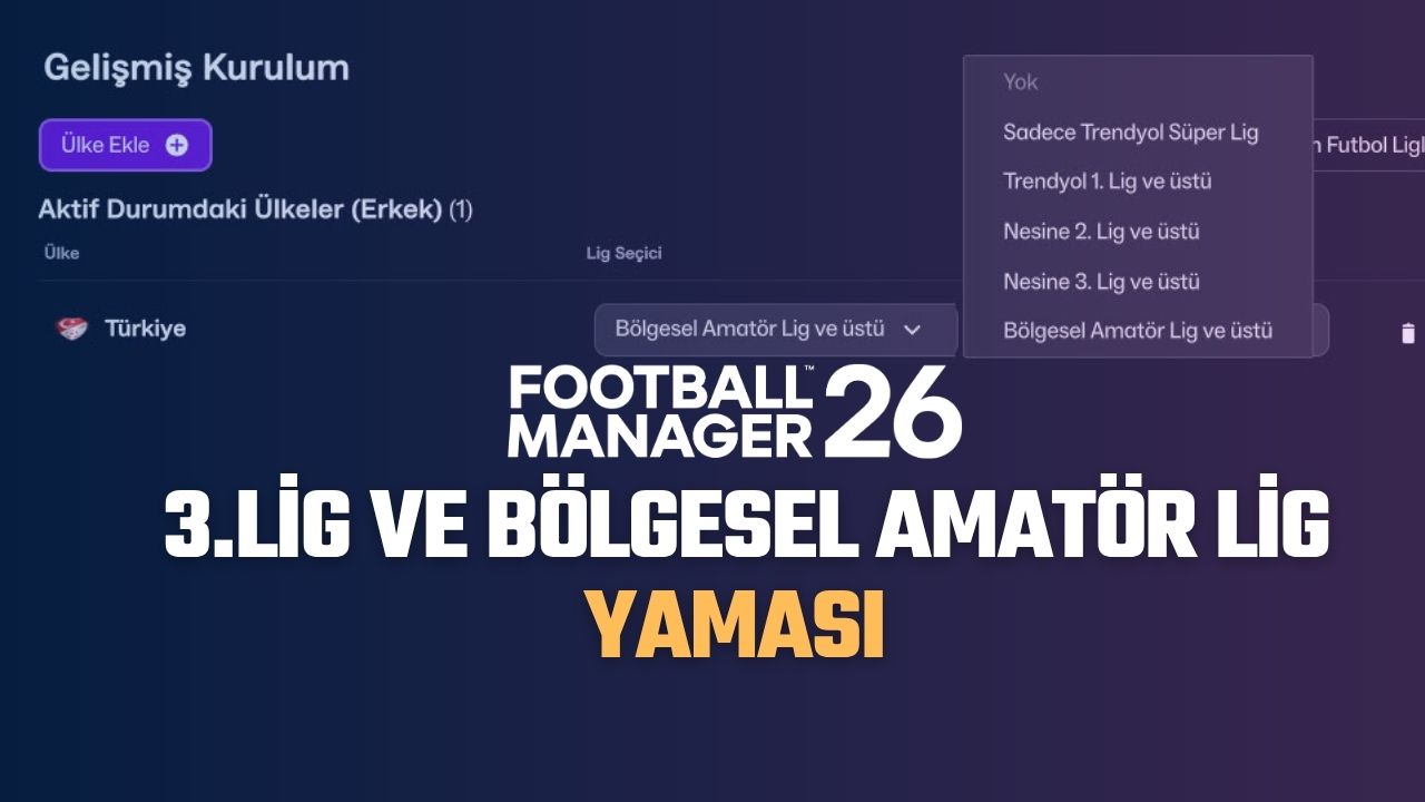 Football Manager 26’da uykusuz gecelerin başlangıcı olacak Türkiye 3.Lig ve Bölgesel Amatör Ligler yaması sonunda çıktı. 3.Lig’den veya Bölgesel Amatör Lig’den takım alarak Türkiye liglerinde kariyerin tadını çıkartmak isteyenler için işte FM26 3.Lig ve Bölgesel Amatör Lig Yamasının detayları ve kurulum adımları.