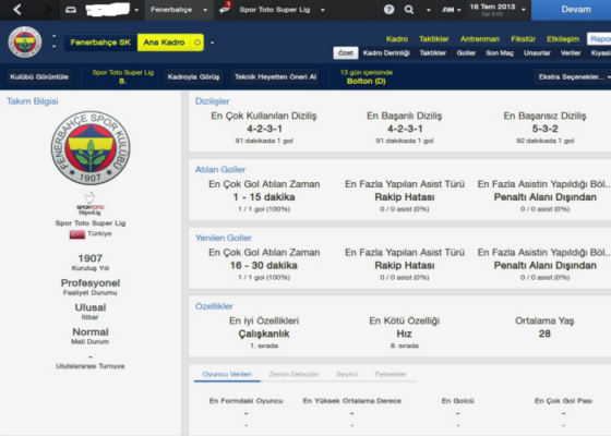 Ayrıca takımda uygulayacağınız taktikde oyuncuyu mevkiye koyduğunuzda hangi özelliğin (ör: kanat oyuncusu, içeri kat eden oyuncu vb) bu oyuncuya ne kadar yatkın olduğunun gösterilmesi rapora bakıp değerlendirme yapma zahmetinden sizi kurtarıyor.