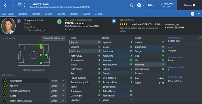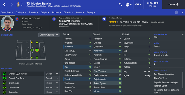 İlk bakışta güçlü fiziği ile dikkat çeken oyuncu hayli iyi olan bir tekniğede sahip. Doğru antrenman ve düzenli forma şansı verilirse, ciddi manada dünya yıldızı olma sinyallerini veriyor. Makul bir fiyat karşılığında kadronuza katabileceğiniz oyuncu çok genç ve potansiyelli.