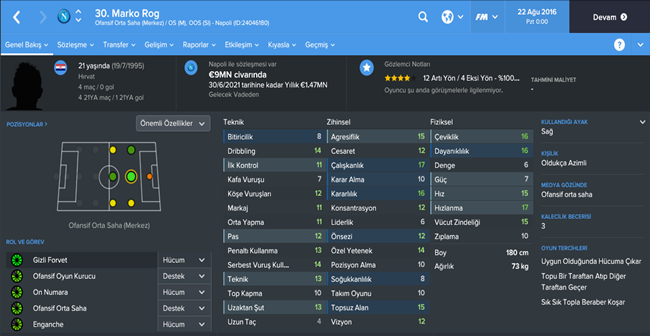 Hırvatistan incelememize bir Napoli oyuncusu ile başlıyoruz. İlk bakışta ofansif ortasaha gibi gözükse de aslında santrfor mevkine daha yakın bir oyuncu. En önemli özelliği hız ve uzaktan şut olmasına karşın,doğru bir gelişim programıyla takımın hücum organizasyonları yönetecek bir lidere dönüşebilir.