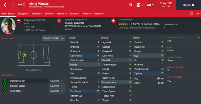 Sırada ki oyuncumu tanıdık bir isim.Futbol hayatına ülkemizde devam eden Mitrovic oyunda bir hayli potansiyeli yüksek bir oyuncu.Kendisi tarafımızca bizzat denenmiş ve yüksek verim alınmış bir oyuncudur.