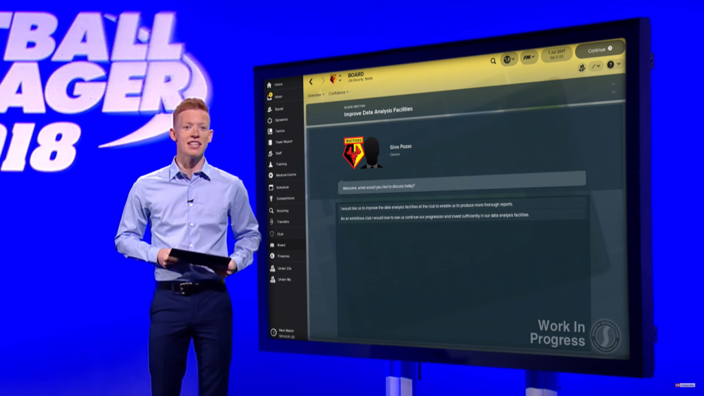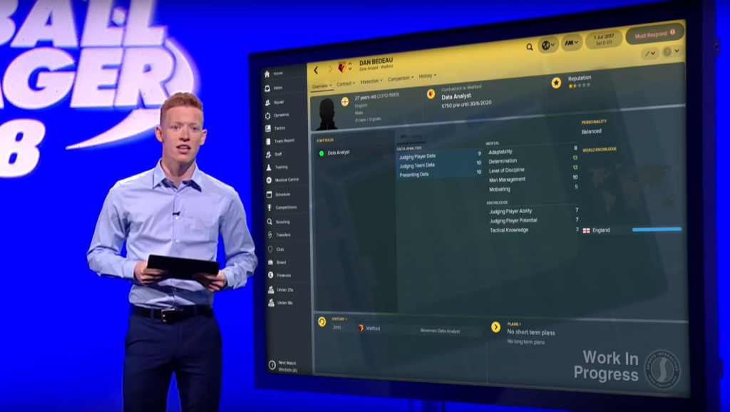 Ve Veri Analistleri. Football Manager 2017 ile birlikte karşımıza çıkan veri analistleri FM 2018 ile birlikte donanımlarını arttırarak serinin yeni oyununda en büyük yardımcımız olmaya hazırlanıyor. Veri analistlerinden oyuncular hakkında rapor vermelerini isteyebilecek böylece oyuncunuzun sezondaki istatistiklerini kolayca görebileceksiniz.