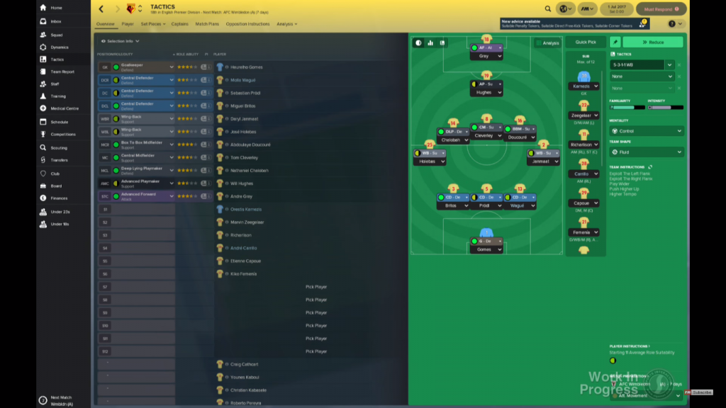 Taktik ekranında ilk değişiklik hemen göze çarpıyor. FM18’de taktik ekranı taktikler ve oyuncular olmak üzere iki ayrı panelde sunuluyor.