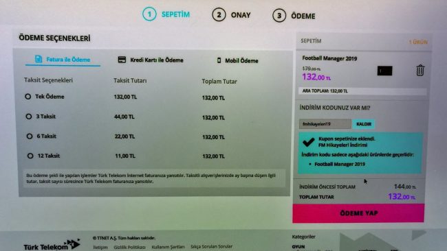 Steam üzerinde 179 TL’ye satışta olan oyun için Türk Telekom’un dijital oyun platfromu Playstore ile yapmış olduğumuz görüşmeler sonunda meyvesini verdi. Playstore’un 144 TL’ye sattığı Football Manager 2019 için 12 TL’lik indirimi kaptık.