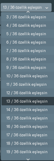 - Daha sonra özellik eşleşsin bölümünden 13/36’yı seçiyoruz. Bu sayıyı 14-15 civarına kadar arttırabilirsiniz.