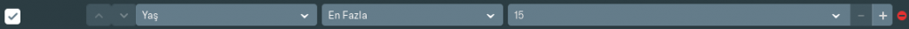 - Koşul ekle bölümünden yaşı en fazla 18 yapıyoruz. Dilerseniz bunu biraz daha aşağı çekebilirsiniz.