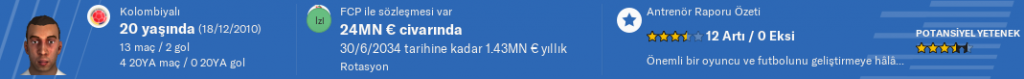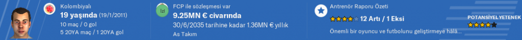 Benim genç yetenekler ararken en çok baktığım lig Kolombiya ligidir. Çünkü hem ucuz hem kaliteli oyuncular barındırıyor. Bu ligden 1M. altı alacağınız bir genç yıldızı büyük bir karla dev kulüplere satabilirsiniz.