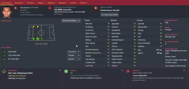 Mariano Galatasaray’ın sağ bek sorununu çözecek teknik ve fiziksel özelliklere sahip bir oyuncu. Hele Sabri’den sonra etkisi daha da fazla olacaktır. Galatasaray’ın bu sezon yaptığı tüm transferler gibi ilk 11’de yeri garanti isimlerden Mariano. Oyunda sakatlanma eğilimi düşük, bu sebeple kendisini yedeklemek adına alt yapıdan bir isim bile yeterli olacaktır. Oyun tercihleri çok çeşitli ve işlevsel olan Mariano, sağ kanadı tek başına kullanabilecek özelliklere sahip bir bek. Hatta sezon performansı sağ kanatta tek başına oynandığında artmaktadır. Hız ve hızlanma değerlerinin yanı sıra dayanıklılığı ve sürekliliği ile taraftarının takdirini kazanacaktır. Kendisine ödenen 4M Euro bonservisi, eli sıkı bir hoca olarak ben vermezdim. Ancak Galatasaray kadrosuna bakıldığı zaman, oldukça yerinde bir transfer.