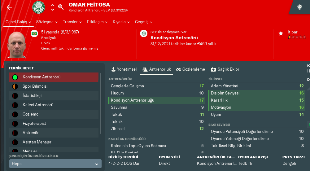 FM 18’de de yer verdiğimiz Omar Hoca da kondisyoner puanı 17 olmakla birlikte zihinsel özelliklerinin ortalamasının yüksek olması sebebiyle düşünülebilir.