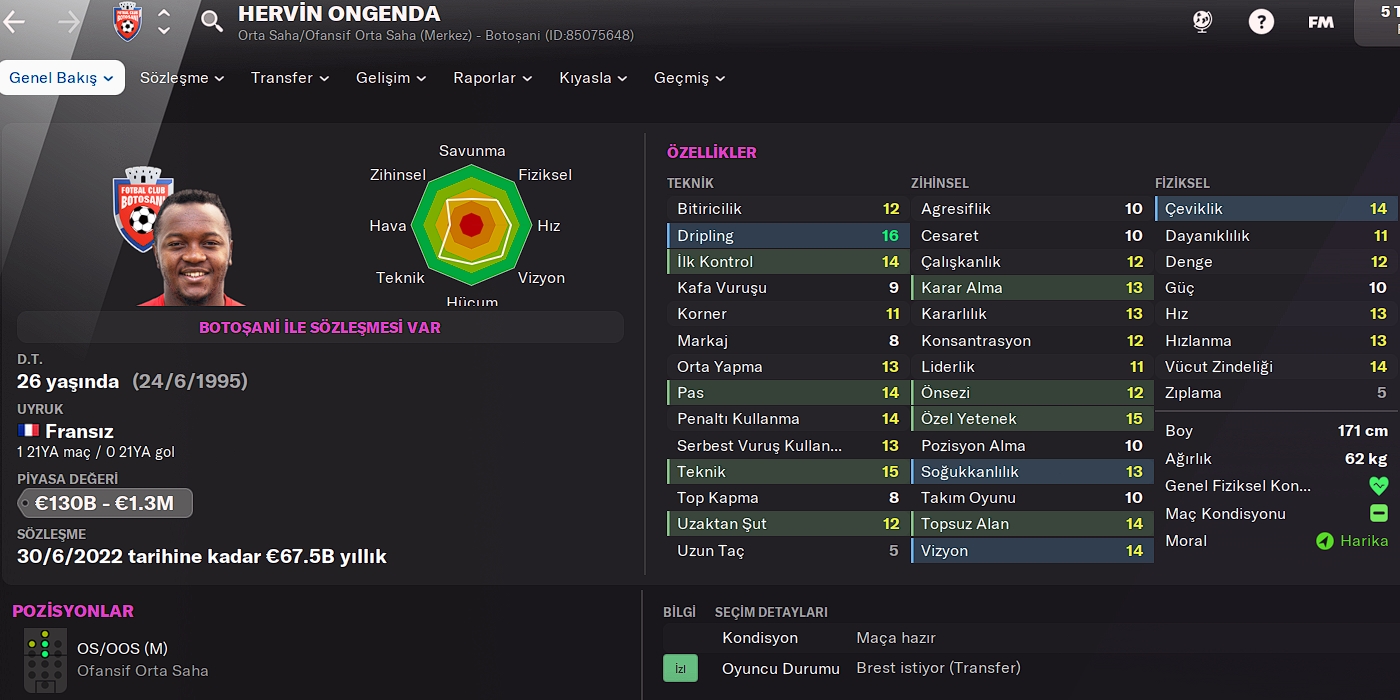 500.000€ – 1.500.000€ arası bonservis bedeli ile transfer edilebilir / İsteğe göre sezon sonu sözleşme bitiminde transfer edilebilir.