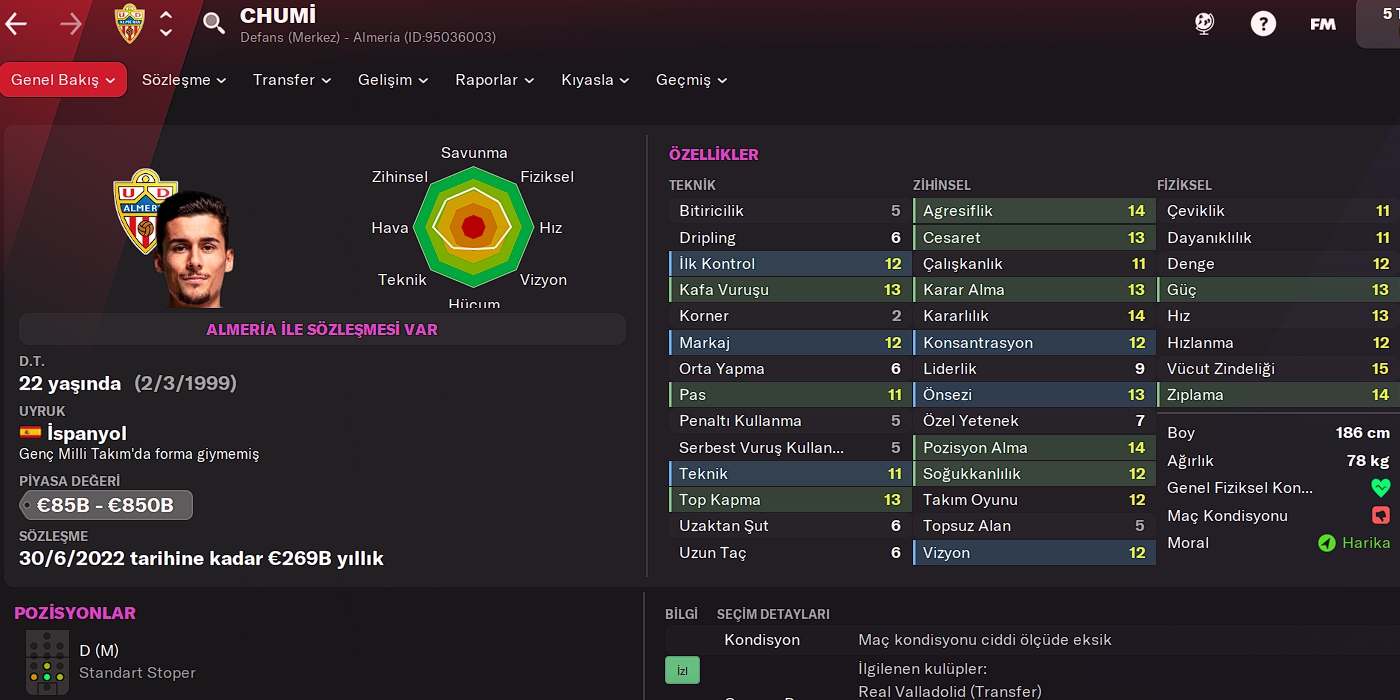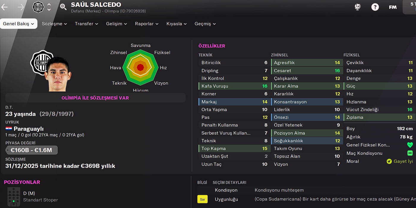 Ayaklarına hakim, stoperlik meziyetleri ilerlemiş her açıdan dengeli profile sahip harika bir stoper.