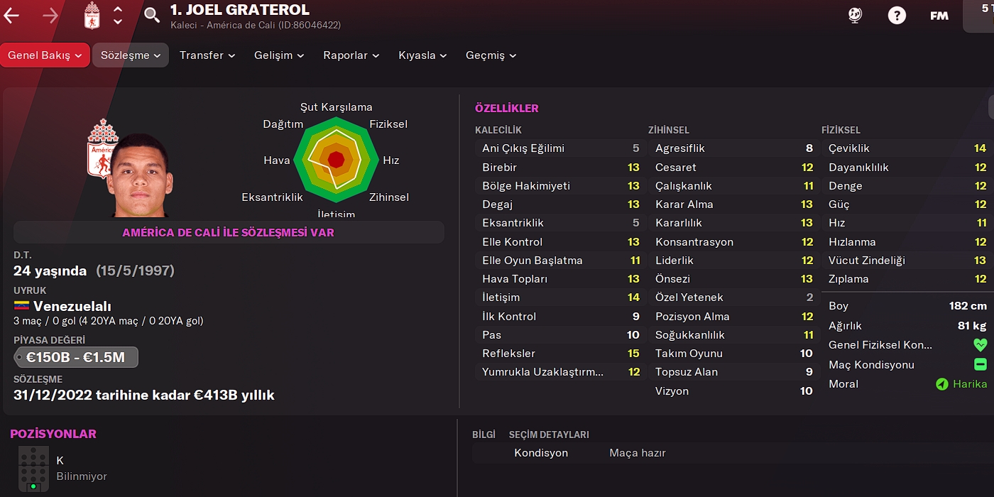 Refleksleri ve savunmayla olan iletişimi iyi olan dengeli bir kaleci.