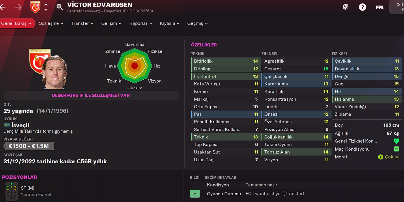 Sezon başı ”İmza attır” seçeneği ile bedelsiz olarak transfer edilebilir.