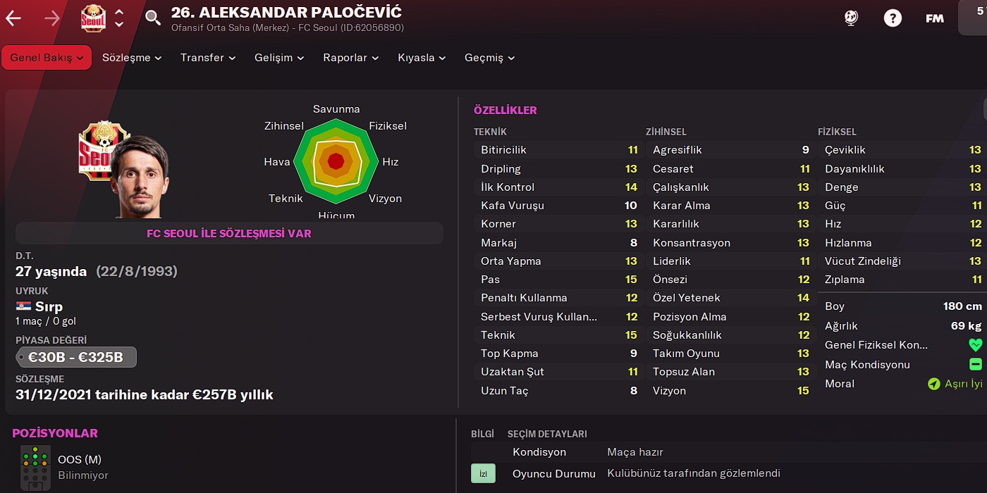 150.000€ – 400.000€ arası bonservis bedeli ile hemen transfer edilebilir / İsteğe göre oyun başı imza attırılabilir (devre arası gelir)