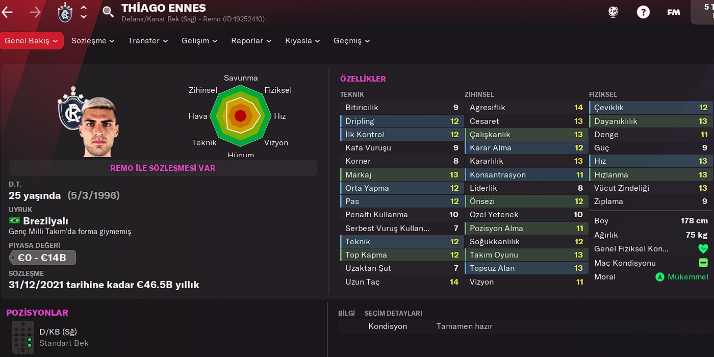 Fiziksel ve teknik özellikleriyle öne çıkan kendisinden istenilen her şeyi yapabilecek kalitede harika bir bek.