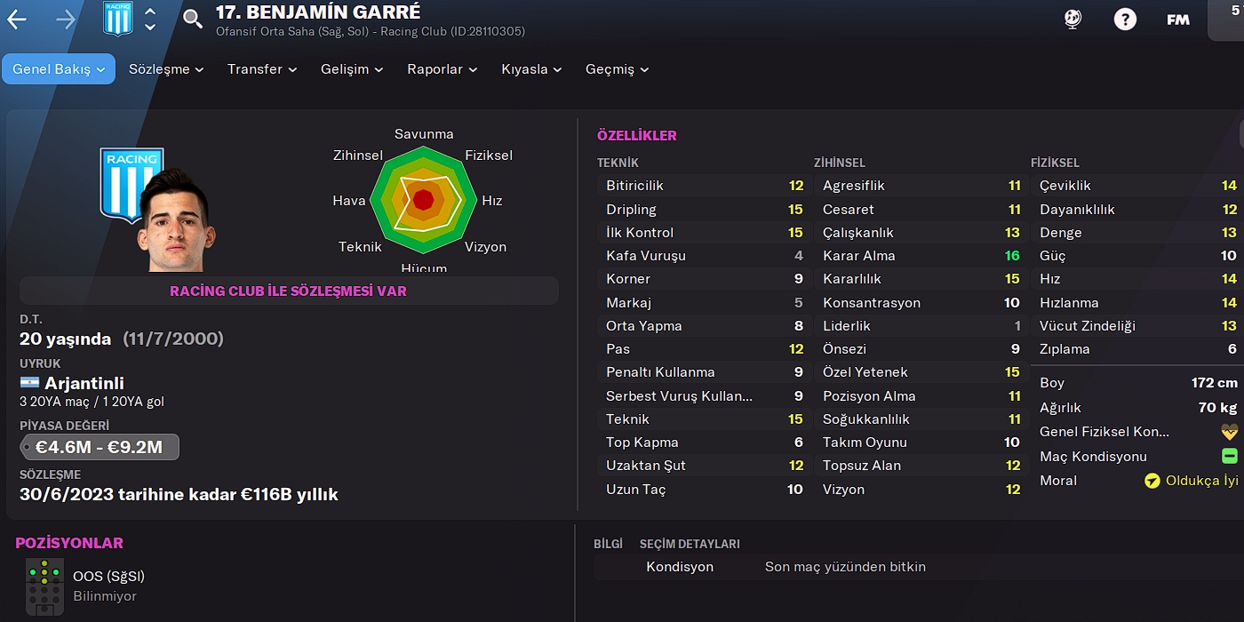 Benjamin Garre golcü kimliğinin yanı sıra üretmekten de çekinmeyen geleneksel bir kanat forvet olarak öne çıkıyor, oyuncunun en bariz dezavantajları konsantrasyon, önsezi ve kafa vuruşu olarak göze çarpıyor.